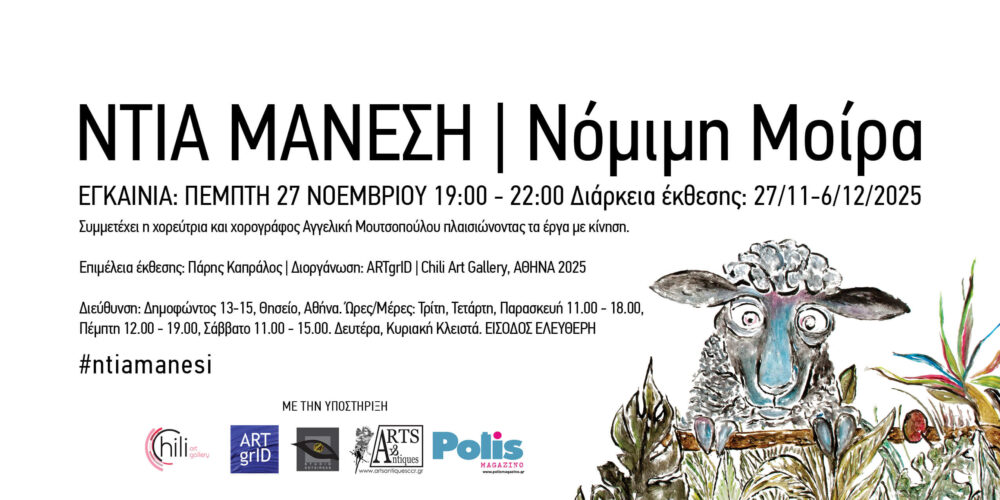 Η Ντία Μάνεση παρουσιάζει έκθεση – εικαστικό project με τίτλο «Νόμιμη Μοίρα», στην Chili Art Gallery (Δημοφώντος 13-15, Θησείο, Αθήνα) και προσκαλεί το φιλότεχνο κοινό στα εγκαίνια της τη Πέμπτη 27 Νοεμβρίου στις 19:00.